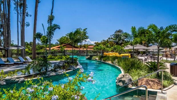 A propriedade conta ainda com quadras esportivas, circuito de arvorismo, academia totalmente renovada e um parque aquático próprio com rio lento, prainha, balde d’água gigante e toboáguas. Os visitantes também podem desfrutar da área Mazza Jump, que reúne trampolins e estruturas para escalada, e de um complexo com quatro pistas de boliche.